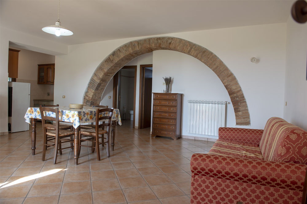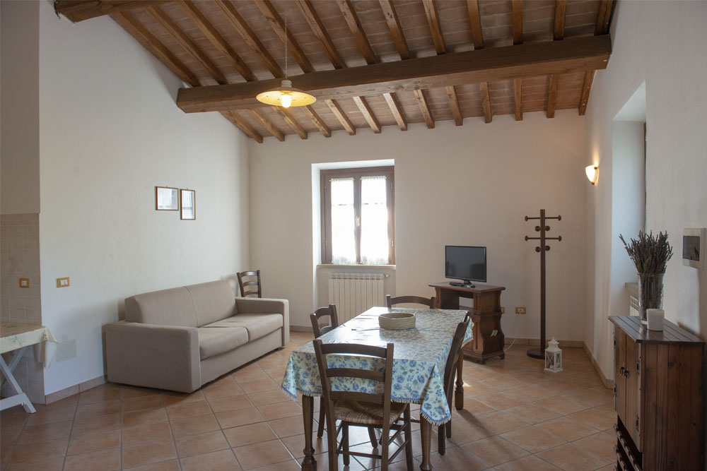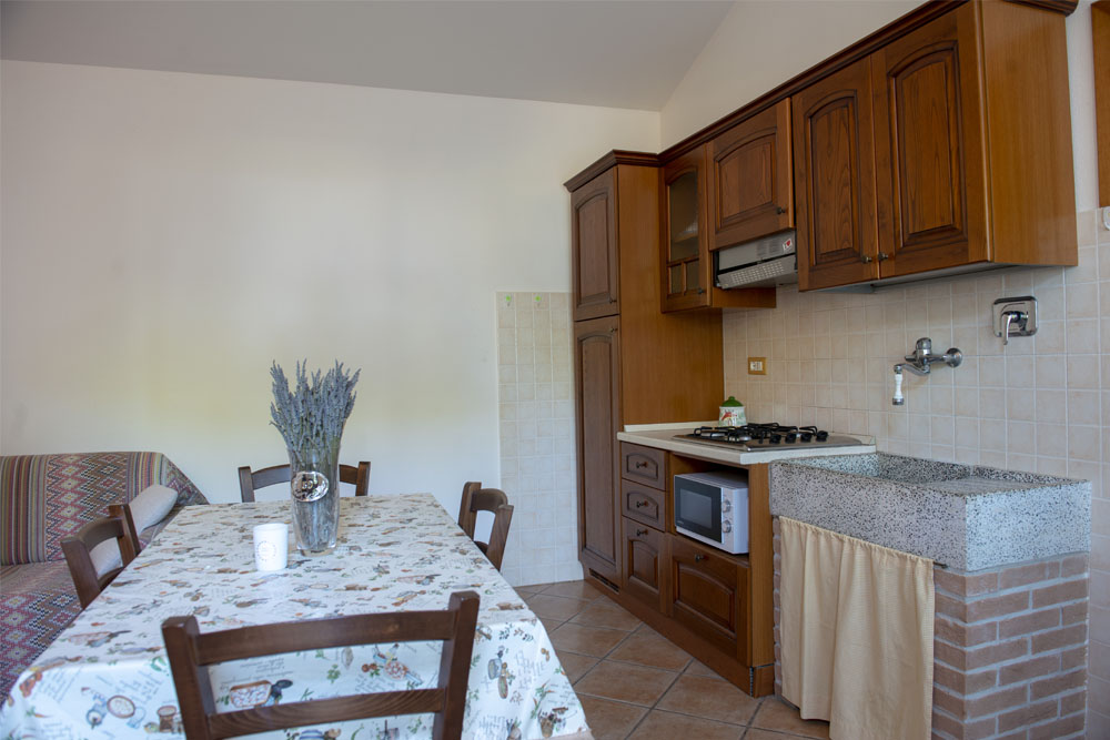 Questa tipologia di appartamento, di circa 50mq, offre su un unico livello camera matrimoniale, bagno con doccia e cucina attrezzata di tutto il necessario per prepararsi i pasti in completa autonomia, con ampio soggiorno con divano letto, arredato in arte povera toscana; con ingresso indipendente.
